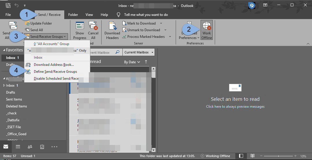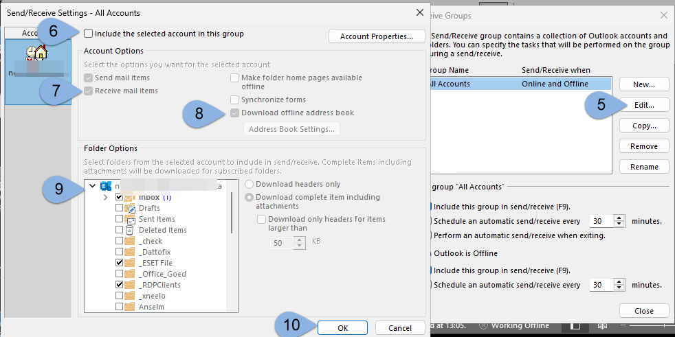 Outlook Setup – Send/Receive Settings