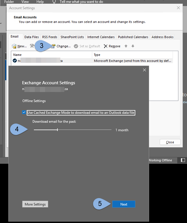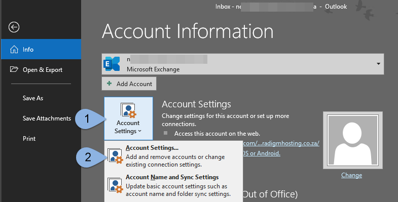 Exchange Account Settings